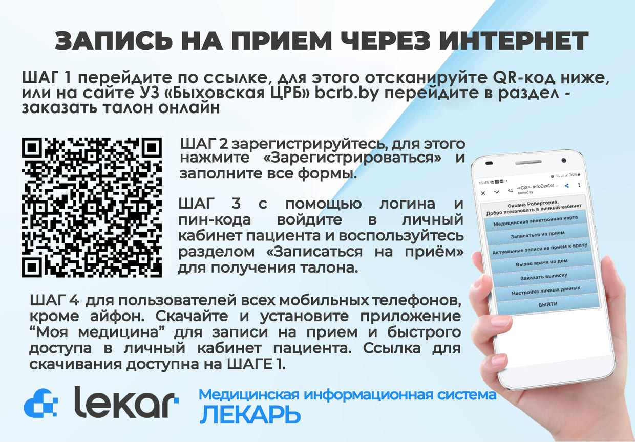 Информация о возможности записи к врачу в электронном виде через информационную систему «Электронная регистратура» в учреждении здравоохранения «Быховская центральная районная больница».